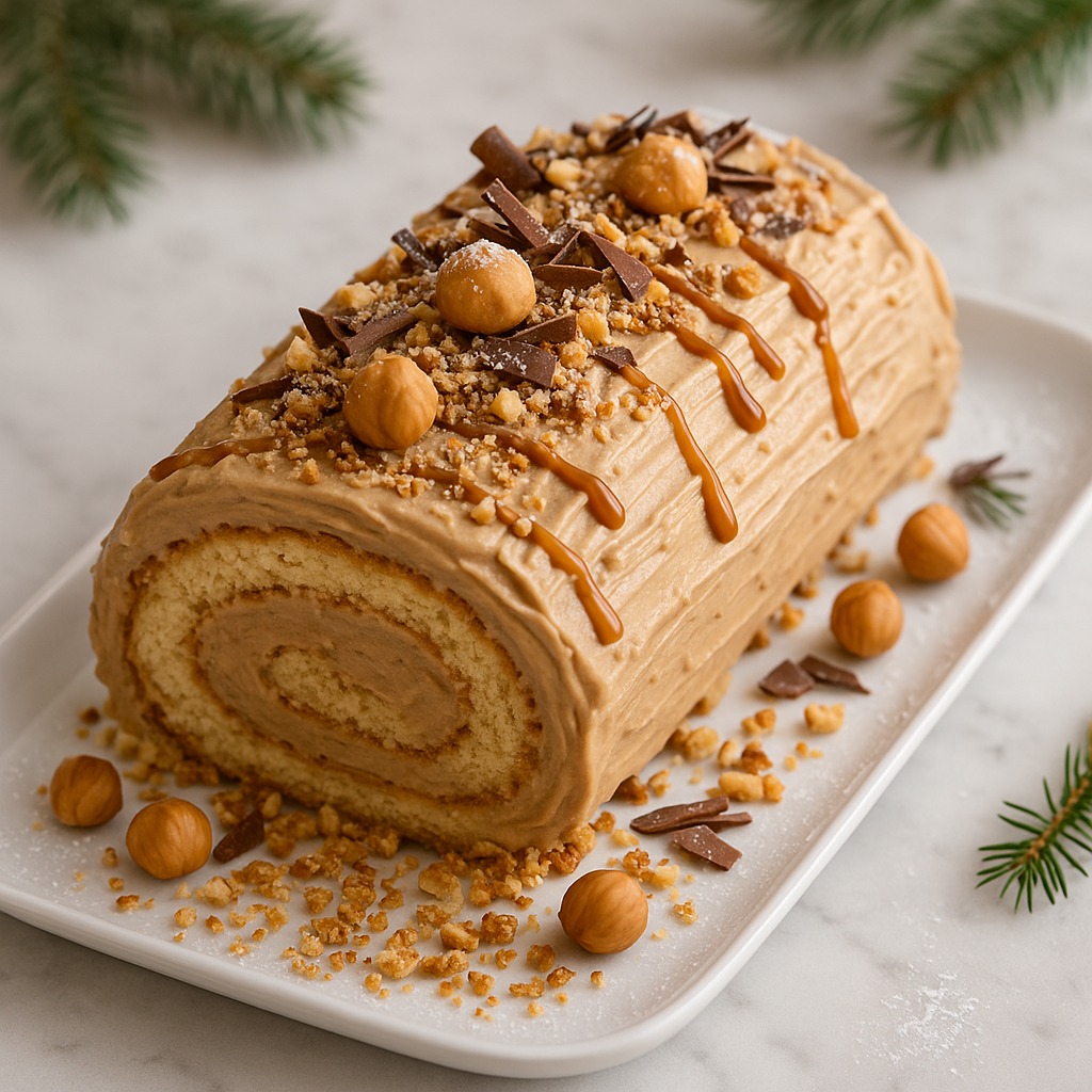 🎀 Praline Yule Log – Rullattu sokerikakku