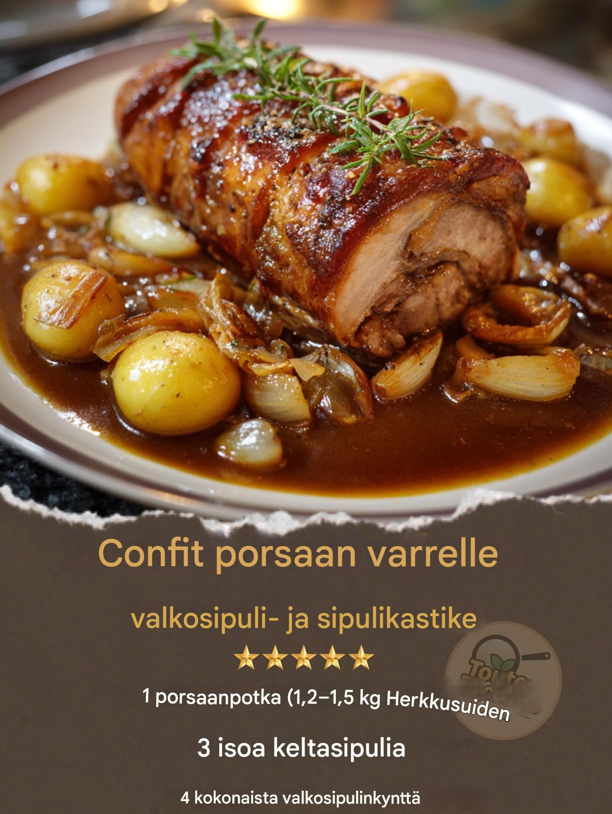 🥩 Confit-possunpotkaa valkosipuli-sipulikastikkeessa