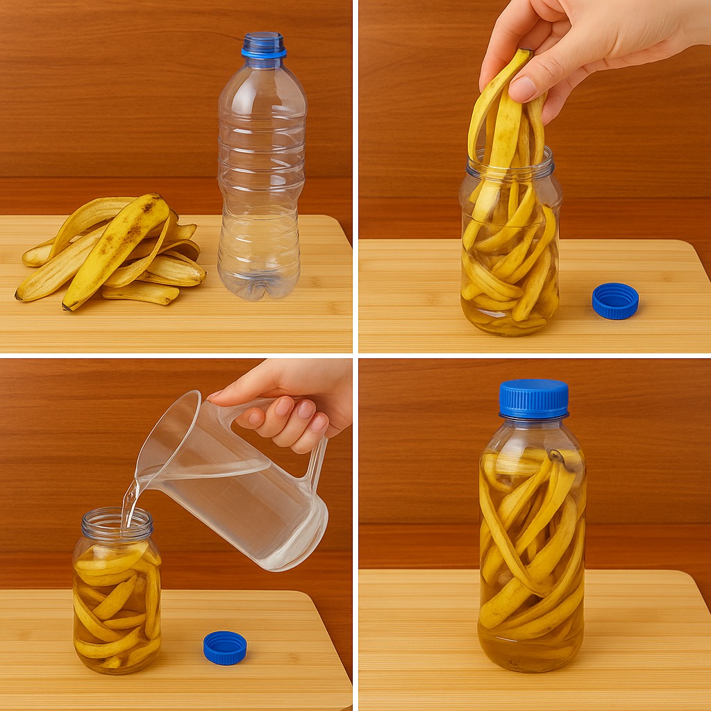 Liota banaaninkuoria vedessä muutaman päivän ajan ja käytä nestettä ravinnepitoisena lannoitteena huonekasveille tai puutarhakasveille.