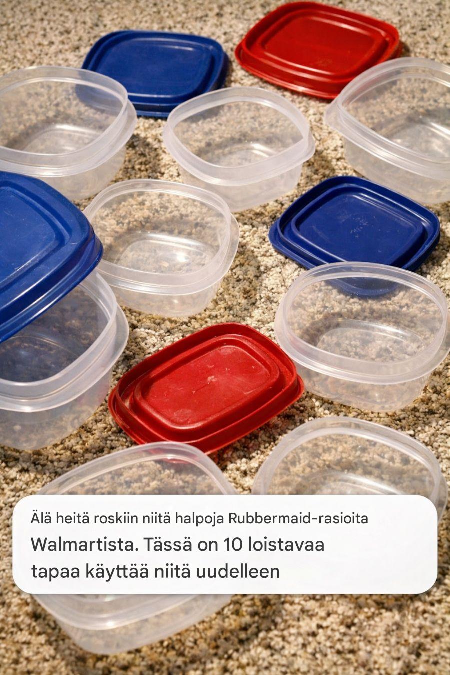 Olemme kaikki olleet siinä tilanteessa: ostaneet edullisia Rubbermaid-rasioita Walmartista ruoan säilytystä varten, vain huomataksemme, että ne pinoavat kaapissa, vievät tilaa ja ovat usein epäsopivia, jopa ilman kansia. Sen sijaan, että antaisimme näiden edullisten rasioiden kasaantua käyttämättöminä, miksi et käyttäisi niitä luovasti ja käytännöllisesti kodissasi? Hieman mielikuvituksella näistä rasioista voi tehdä järjestelytyökaluja, askarteluapuvälineitä ja paljon muuta.