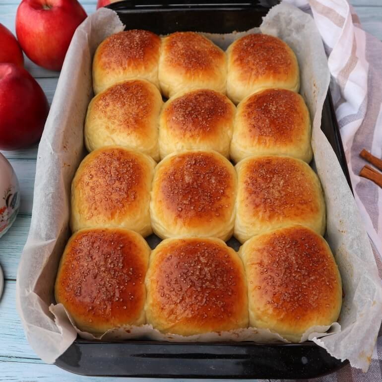 Nämä Buchteln-sämpylät on tehty taivaallisen pehmeästä hiivataikinasta ja maukkaasta omena-kanelitäytteestä. Ne maistuvat meheviltä, ​​pehmeiltä ja herkullisilta. Nämä omena-kanelitäytteiset hiivasämpylät sopivat erinomaisesti aamiaiseksi tai jälkiruoaksi kylminä talvipäivinä. Ne on helppo leipoa tällä reseptillä käyttämällä tavallisia aineksia.