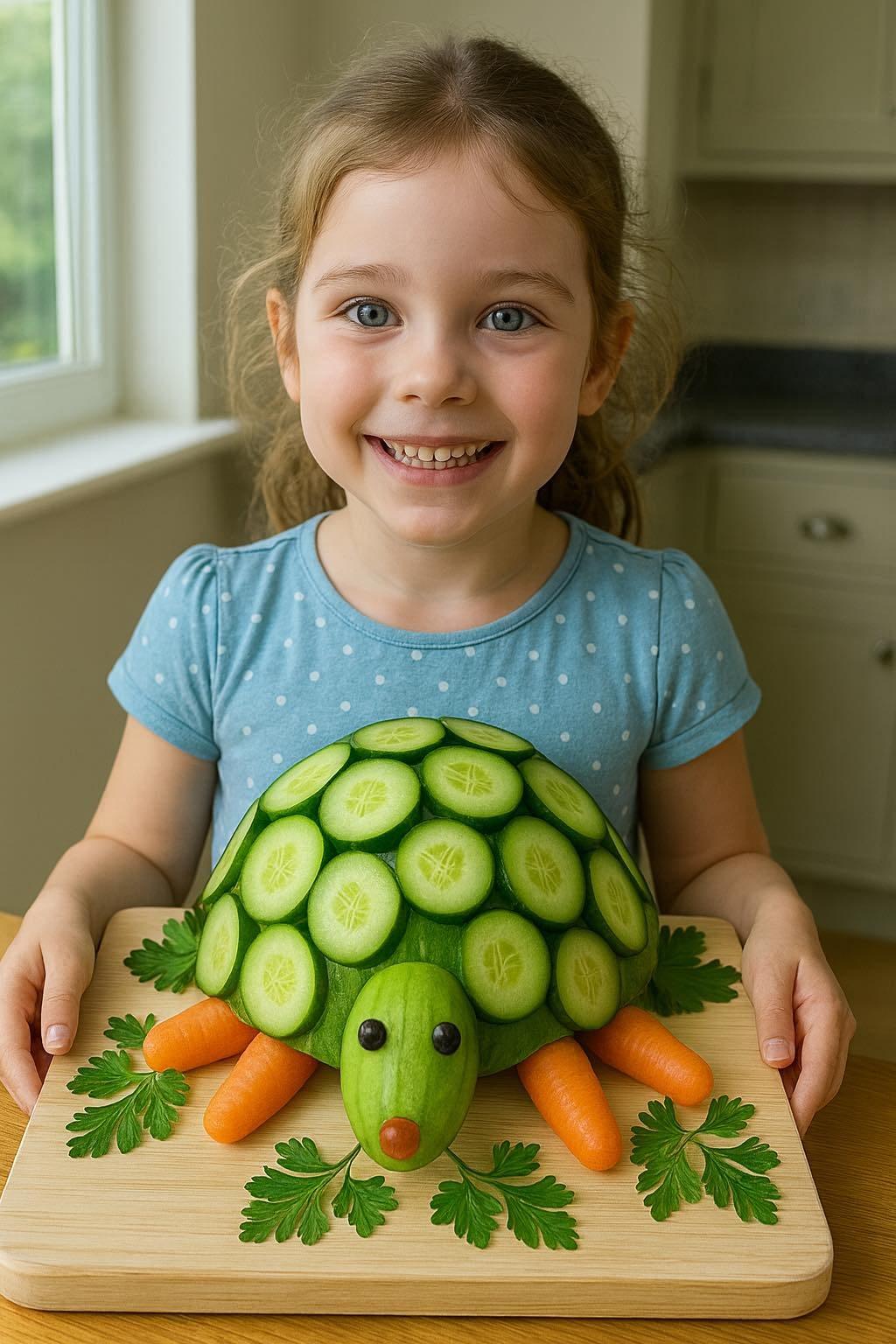 Jotkut arjen hetket valloittavat sydämen yksinkertaisuudellaan ja luovuudellaan. Lapsi seisoo keittiössä hymyillen ja ylpeänä leikkuulauta kädessään. Leikkuulaudalla makaa kilpikonna – ei oikea, vaan mielikuvituksellinen olento, joka on tehty hedelmistä ja vihanneksista. Tämä ei ole vain ruokaa. Se on taidetta, leikkiä ja rakkautta samassa muodossa.