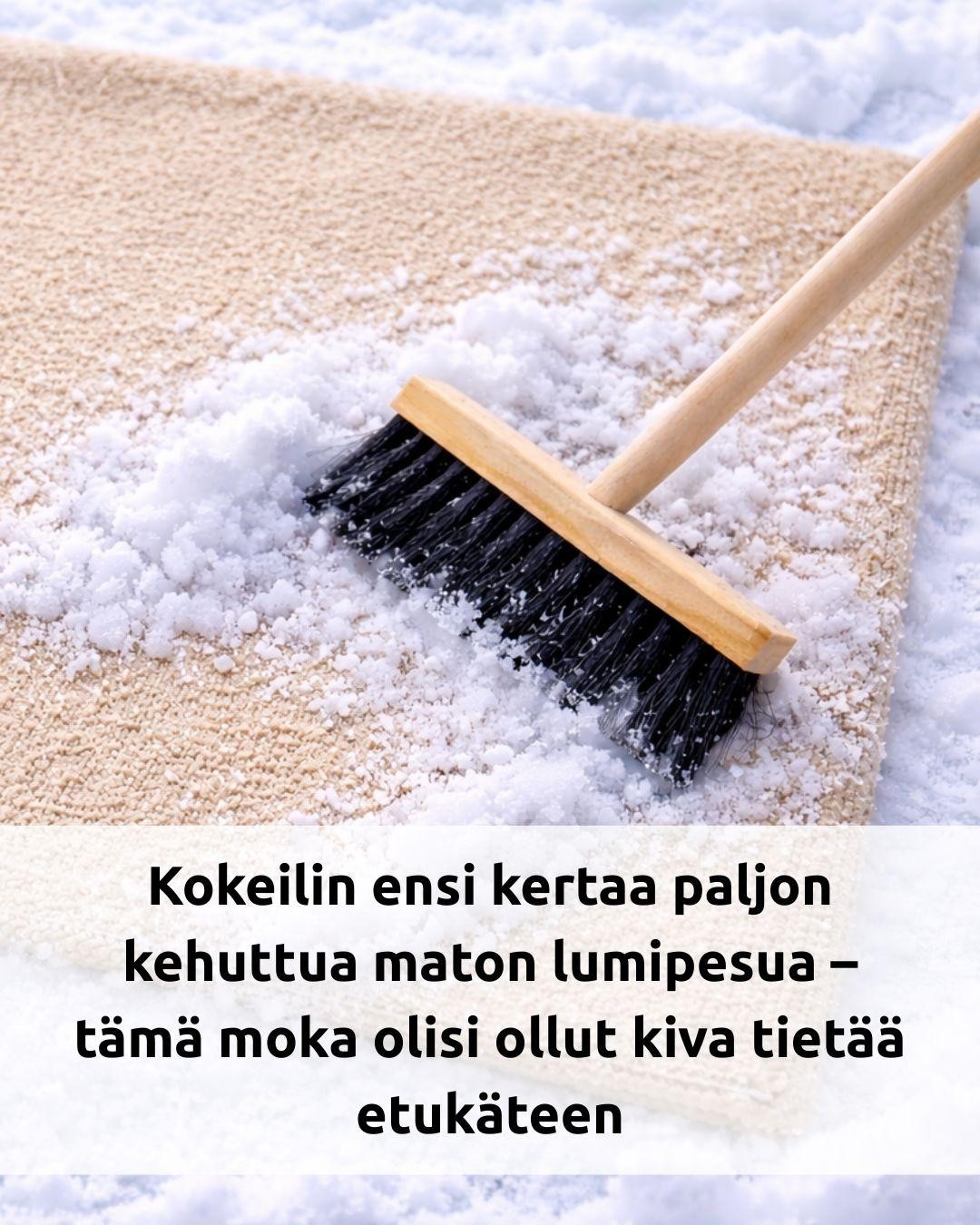 Lumipesu on ollut käytössä jo pitkään, eikä syyttä. Kuiva pakkaslumi puhdistaa matot hellävaraisesti: