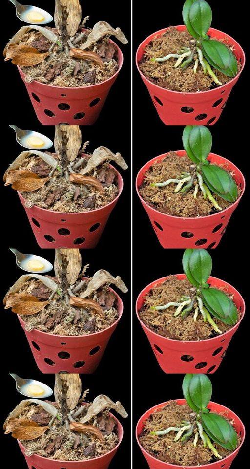 Vaikka orkidea ei olisikaan lehtiä, se voi selviytyä, jos juuret tai tyvi ovat vielä elossa.