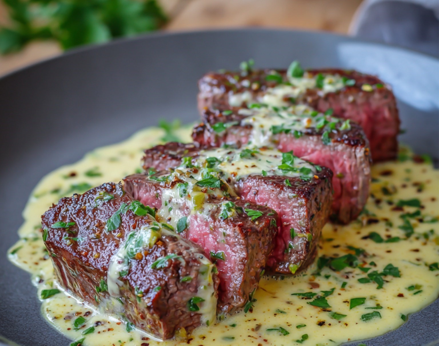 Naudanfilee kermaisella salottisipulikastikkeella