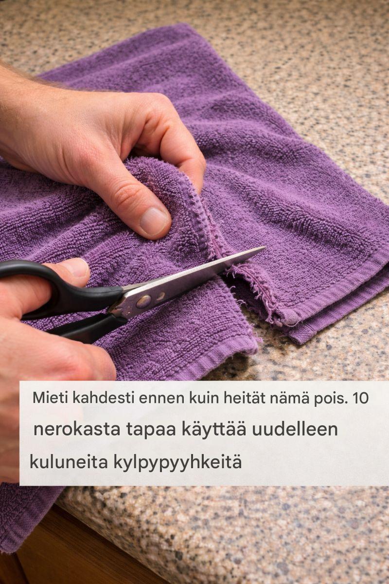 Vanhoista pyyhkeistä voi leikata pienempiin osiin puhdistusrättejä, jotka sopivat täydellisesti roiskeiden ja lian siivoamiseen. Leikkaa pyyhe vain neliöiksi tai suorakulmioiksi, noin 30 x 30 cm, ja päärmää reunat, jos haluat siistimmän ilmeen. Nämä rätit sopivat erinomaisesti pölyjen pyyhkimiseen, ikkunoiden puhdistukseen tai keittiön roiskeiden pyyhkimiseen imukykyisyytensä ansiosta.