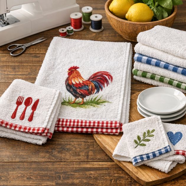 Nämä uudelleenkäytettävät pyyhkeet ja lautasliinat ovat paitsi ympäristöystävällisiä, myös kestäviä ja imukykyisiä, täydellisiä astioiden kuivaamiseen tai tarjoiluun aterioiden yhteydessä. Voit muokata niitä kangasmaalilla tai kirjonnalla sopimaan keittiösi sisustukseen.