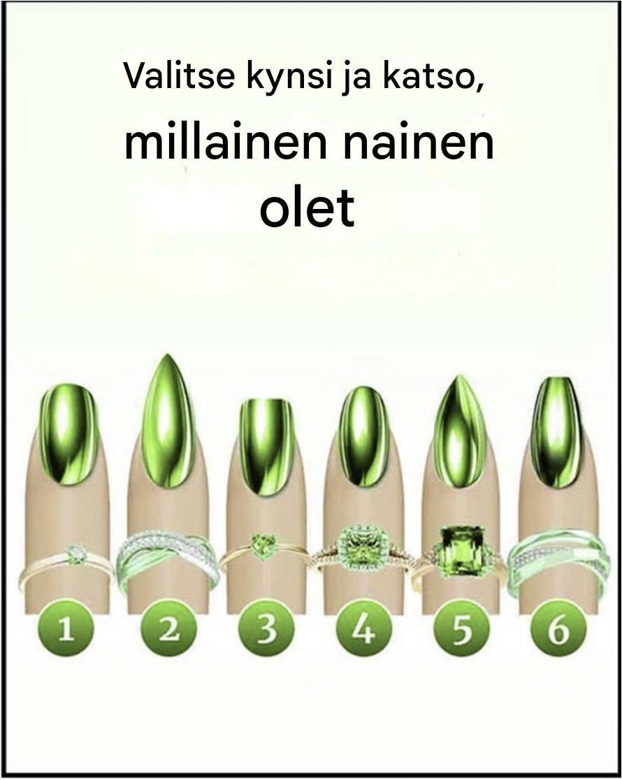 Kynsityylisi kertoo paljon sinusta. Kyllä, luit aivan oikein! Katso vain kynsien muotoa, joka vetää sinua puoleensa, ja tämä ainutlaatuinen persoonallisuustesti saattaa yllättää sinut positiivisesti. Valitse kuudesta alla olevasta muodosta se, joka sopii sinulle parhaiten… ja katso, mitä se paljastaa vahvuuksistasi ja heikkouksistasi sekä siitä, mikä on sinulle todella tärkeää elämässä.