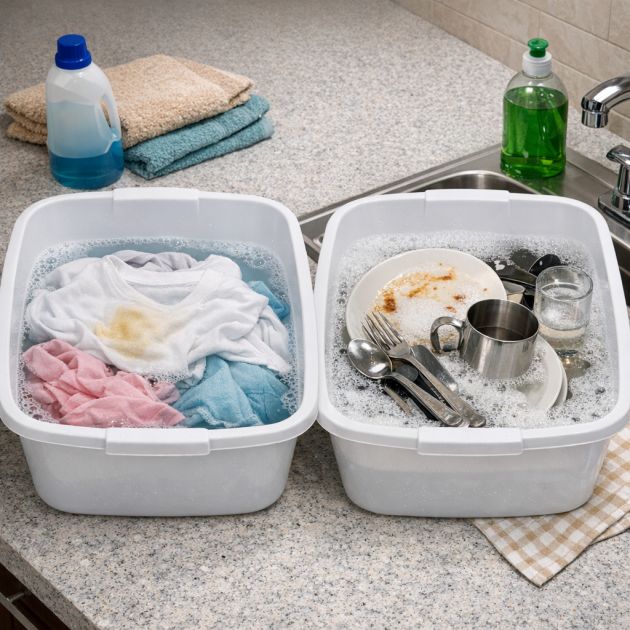 Tiskiallas voi toimia kätevänä kannettavana liotusasemana moniin eri tarkoituksiin. Tarvitsetpa sitten tahraantuneiden vaatteiden esiliotusta tai herkkien vaatteiden pesua, lämpimällä saippuavedellä täytetty tiskiallas voi toimia. Täytä esimerkiksi tavallinen 12 litran tiskiallas haalealla vedellä ja miedolla pesuaineella liottaaksesi tahraantuneita vaatteita ennen pesua. Tämä menetelmä on erityisen hyödyllinen pienissä asunnoissa tai kodeissa, joissa ei ole erillistä kodinhoitohuonetta.
