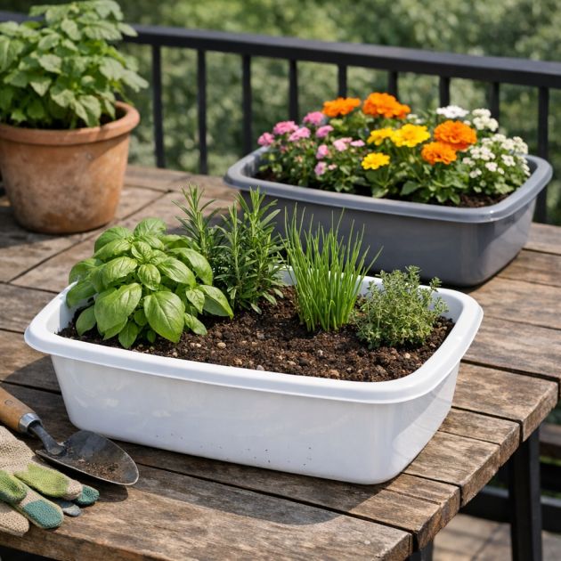 Nämä tilapäiset istutusastiat ovat kevyitä ja helppoja siirtää, joten voit siirtää niitä tarpeen mukaan varmistaaksesi, että kasvisi saavat riittävästi auringonvaloa. Lisäksi tiskialtaiden käyttäminen istutusastioina on edullinen tapa aloittaa puutarhanhoito.