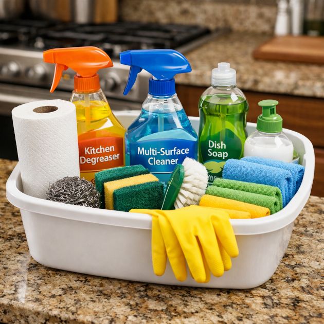 Astianpesualtaan pitäminen täynnä siivoustarvikkeita jokaiseen huoneeseen voi säästää aikaa ja vaivaa. Täytä astianpesualusta monikäyttöisellä puhdistusaineella, talouspaperilla, sienillä ja muilla tärkeillä tarvikkeilla. Tätä kannettavaa astiaa on helppo siirtää tilasta toiseen, joten kaikki tarvittava on käden ulottuvilla.