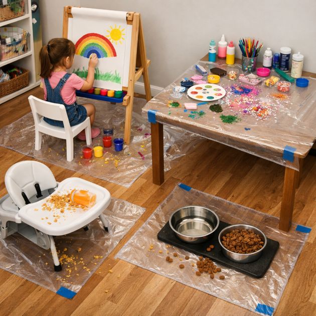 2. Suojaa lattiat ja huonekalut lemmikkien, lasten tai askarteluhuoneen suojina