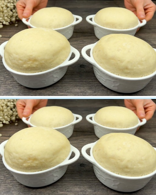 Aseta sitten taikinapallot valmisteltuihin vuokiin ja peitä keittiöpyyhkeellä. Anna niiden kohota lämpimässä paikassa vielä 20 minuuttia.
