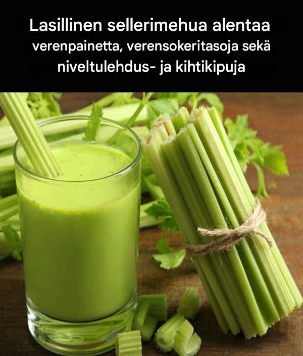 Lasillinen sellerimehua alentaa verenpainetta, verensokeritasoja sekä niveltulehdus- ja kihtikipuja