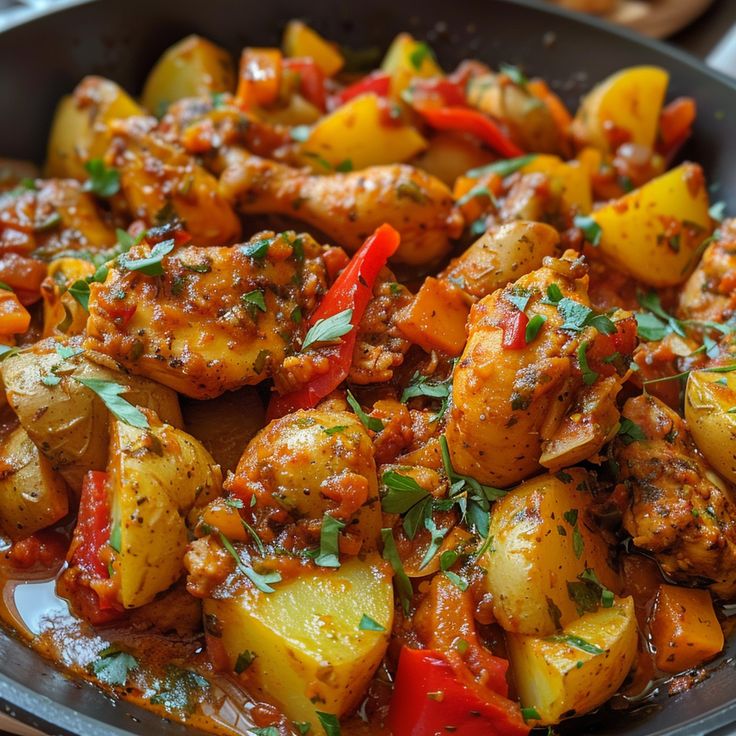 Ainekset 4 annokseen 4 kanan koipireittä (tai 600 g kanan rintafileetä, paloiteltuna) 3 paprikaa (1 punainen, 1 keltainen, 1 vihreä, noin 400 g, siemenet poistettuina ja suikaleiksi leikattuna) 4 keskikokoista perunaa (noin 500 g, kuorittuna ja 2 cm kuutioiksi leikattuna) 1 keskikokoinen sipuli (hienonnettuna) 2 valkosipulinkynttä (hienonnettuna) 200 g kirsikkatomaatteja (tai 1 tölkki kuorittuja tomaatteja, … Read more