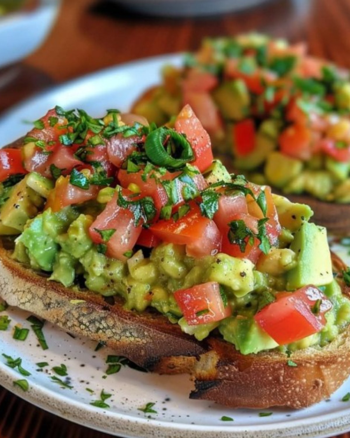 Ainekset (4 hengelle) 1 iso, kypsä avokado 🥑 1 rkl (15 ml) sitruunamehua 🍋 Suolaa ja vastajauhettua mustapippuria 1/4 kuppia (45 ml) pilkottuja kirsikkatomaatteja 🍅 2 rkl (30 ml) hienonnettua punasipulia 🧅 2 rkl (30 ml) pilkottua tuoretta basilikaa 🌿 1 patonki, leikattuna 1,2 cm paksuisiksi viipaleiksi 🥖 2 rkl (30 ml) oliiviöljyä 1 valkosipulinkynsi, … Read more