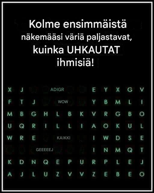 Katsoessasi ensimmäistä kuvaa keskity väriin, joka kiinnittää ensimmäisenä huomiosi. Tässä on mitä se saattaa kertoa persoonallisuudestasi: