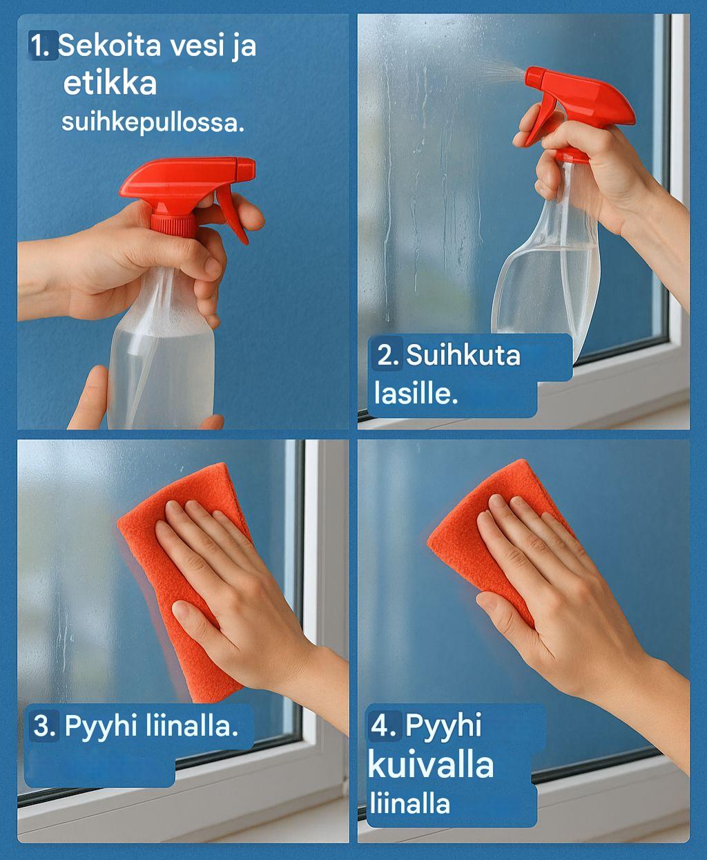 1️⃣ Sekoita vesi ja etikka suihkepullossa.