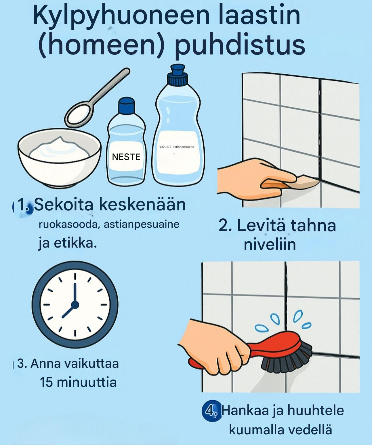 1️⃣ Sekoita ruokasooda, astianpesuaine ja etikka pienessä kulhossa.