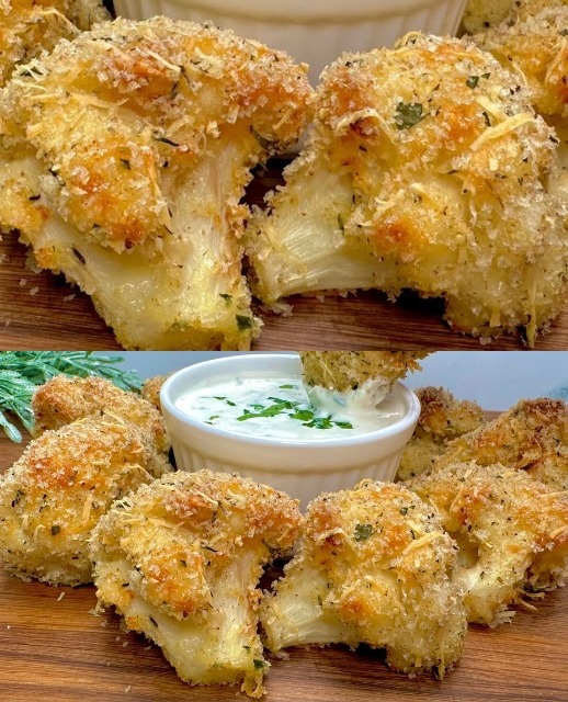 Lähde kulinaariselle seikkailulle näiden kultaisten, rapeiden kukkakaalipalojen parissa, joissa vaatimaton kukkakaali muuttuu gourmet-herkuksi. Rapeaksi paistettu parmesaani- ja panko-kuori, maustettu italialaisilla yrteillä ja ripauksella valkosipulia, tarjoaa jokaiselle palalle tyydyttävän rapeuden, joka johtaa mureaan, paahdettuun kukkakaaliin sisällä.