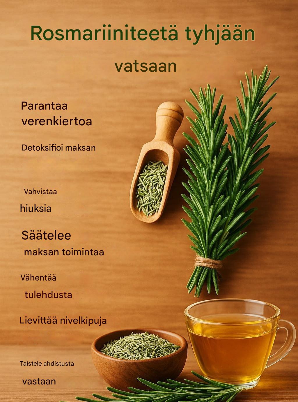 20 rosmariiniyrttiteen juomisen hyötyä tyhjään vatsaan