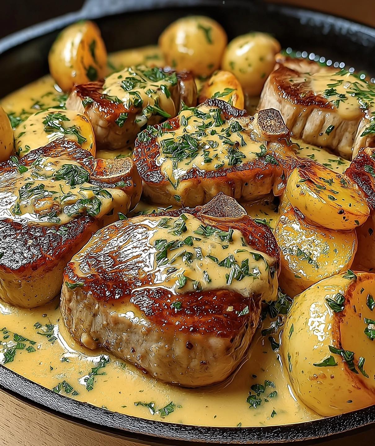 Ruskista niitä kuumalla lämmöllä 3–4 minuuttia per puoli. Niiden tulisi olla hyvin ruskistuneet. Ota ne pois ja laita sivuun perunoiden kanssa.
