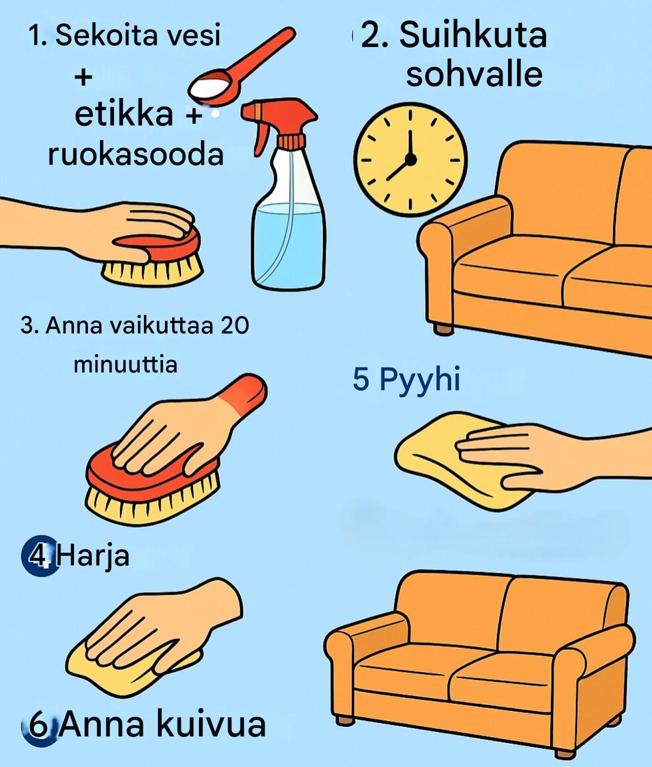 2ď¸âŁ Suihkuta kevyesti koko sohvan pintaan.