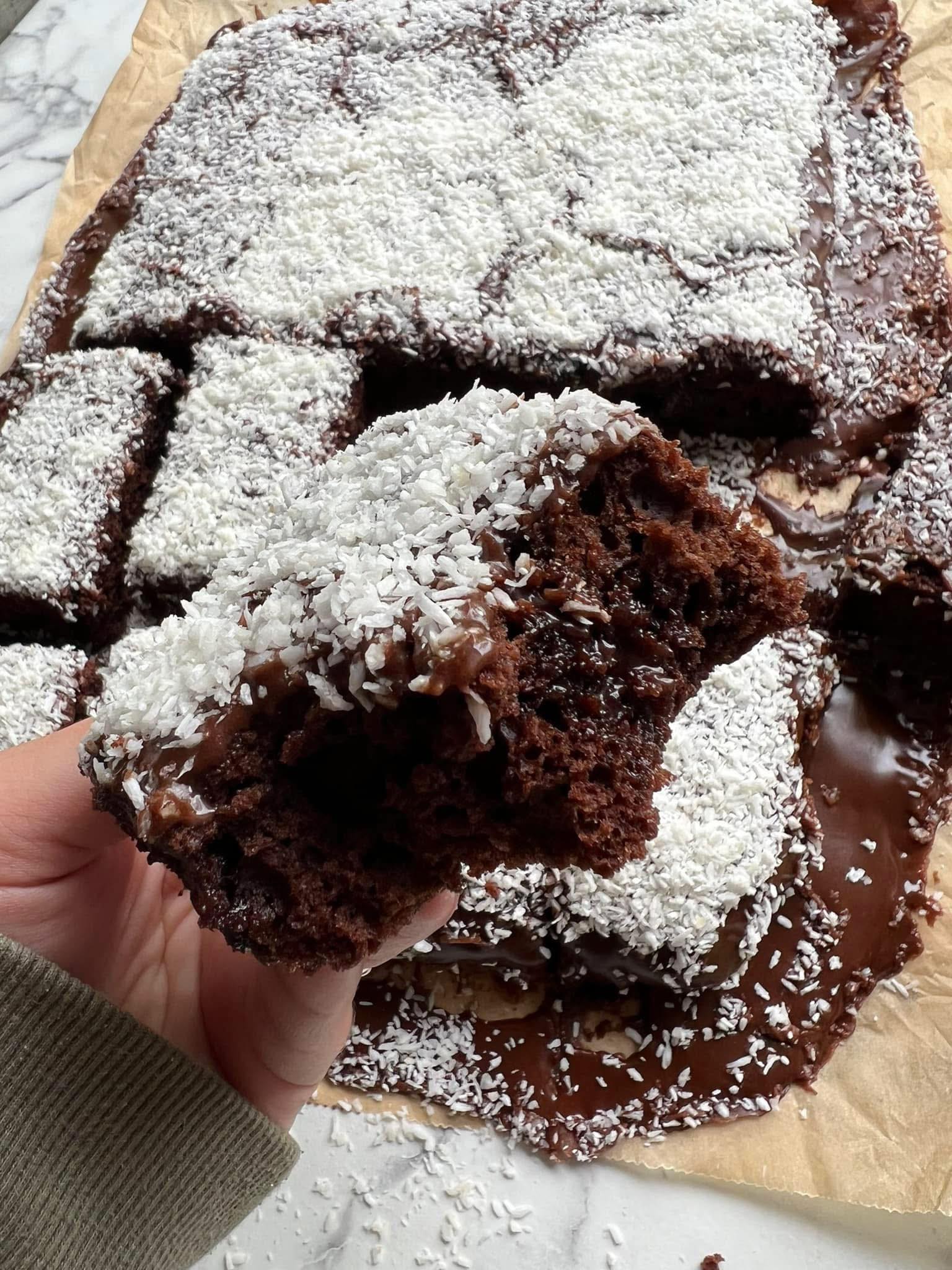 Suklaakakku kookoksella ja kahvikuorrutteella