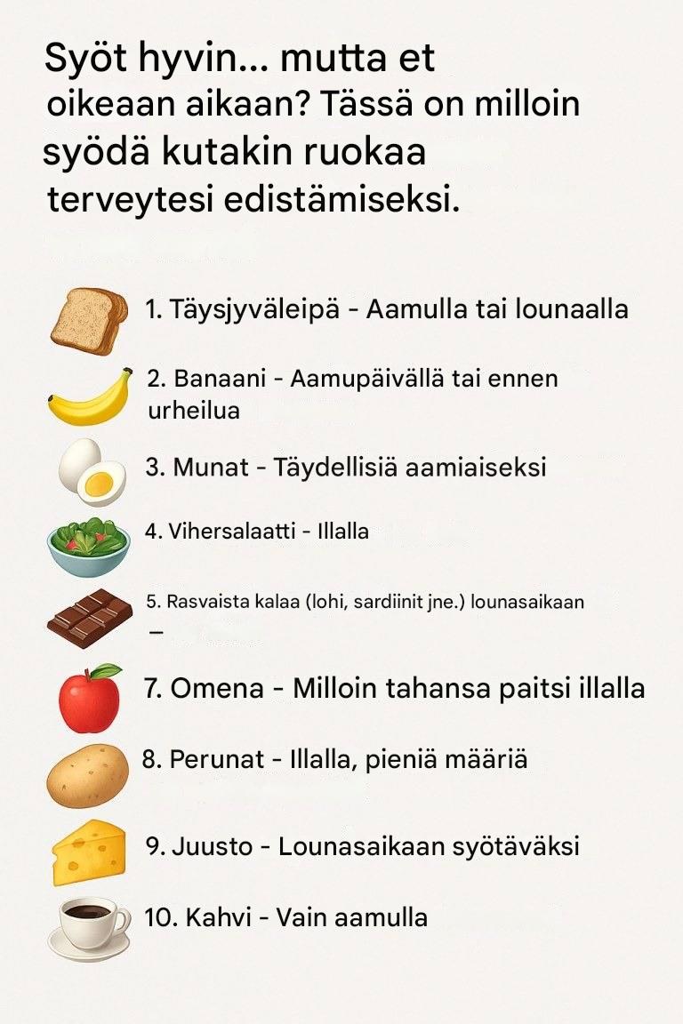 Tässä on 10 arkiruokaa ja ihanteellinen aika syödä niitä: