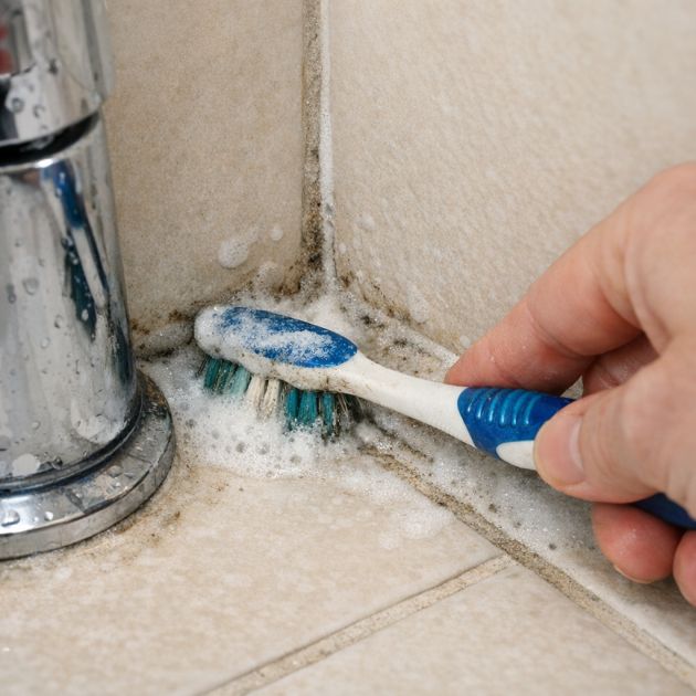Vanhat hammasharjat sopivat täydellisesti saumausaineen ja laattojen puhdistukseen. Pienen kokonsa ansiosta ne pääsevät laattojen väliin, joihin lika ja home yleensä kerääntyvät. Käytä ruokasoodan ja etikan sekoitusta tai kaupasta ostettua saumausaineen puhdistusainetta. Kasta hammasharja puhdistusliuokseen ja hankaa saumausaineita painamalla voimakkaasti lian poistamiseksi. Harjakset ovat riittävän jäykät irrottamaan likaa, mutta riittävän hellävaraiset, jotta ne eivät naarmuta pintoja. Paikoissa, kuten kylpyhuoneen nurkissa tai hanojen ympärillä, joihin suuremmat harjat eivät yletä, vanha hammasharja voi tehdä merkittävän eron.