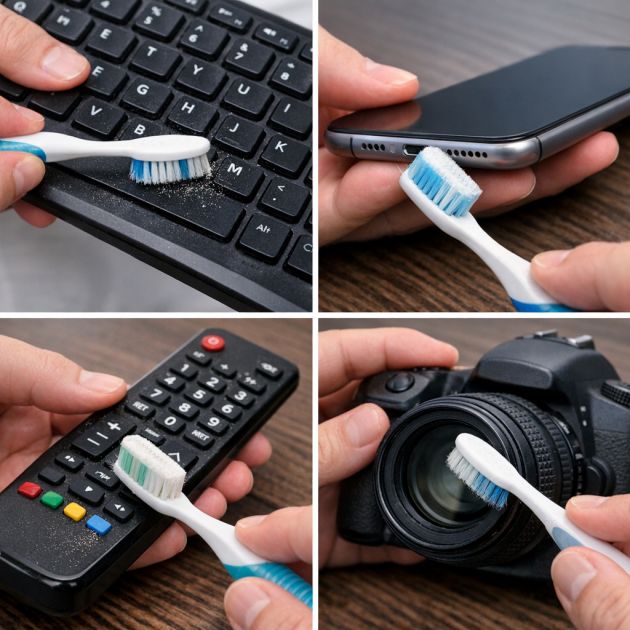 Tekniset laitteet ovat tunnettuja pölyn ja lian keräämisestä, erityisesti pieniin rakoihin, kuten näppäimistön näppäimiin ja puhelinliitäntöihin. Vanha hammasharja voi poistaa nämä kertymät tehokkaasti. Pidä näppäimistöä ylösalaisin ravistellaksesi irtonaiset roskat pois ja harjaa sitten hammasharjalla varovasti näppäinten välit. Puhelinliitäntöjen puhdistamiseen käytä pehmeäharjaksista hammasharjaa vaurioiden välttämiseksi ja harjaa kevyesti pölyn ja nukan poistamiseksi. Hammasharjaa voidaan käyttää myös muiden elektronisten laitteiden, kuten kaukosäätimien ja kameran linssien, puhdistamiseen, jotta ne pysyvät puhtaina ja toimivina optimaalisesti.