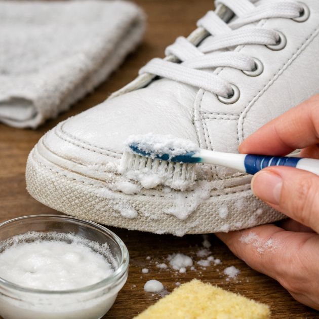 Kengät ja lenkkarit voivat likaantua nopeasti, etenkin pohjien ja tikkausten ympäriltä. Vanha hammasharja on erinomainen työkalu lian ja tahrojen hankaamiseen pois. Käytä sekoitusta lämmintä vettä ja muutamaa tippaa astianpesuainetta. Kasta hammasharja liuokseen ja hankaa kenkien tahrautuneet kohdat. Valkoisissa lenkkareissa ruokasoodasta ja vedestä valmistettu tahna voi auttaa poistamaan pinttyneitä tahroja. Hammasharjan pienen koon ja ketteryyden ansiosta voit puhdistaa monimutkaiset yksityiskohdat ja saumat, jolloin jalkinesi näyttävät raikkailta ja uusilta.