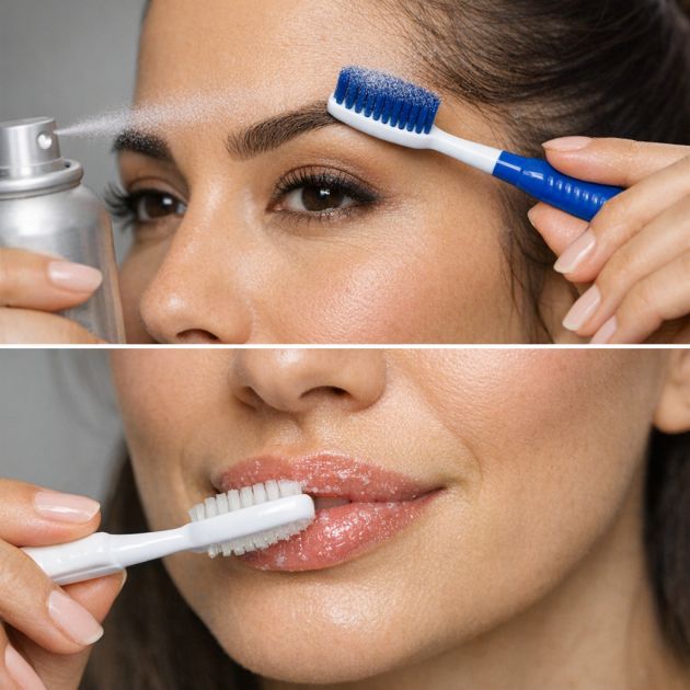Vanhat hammasharjat voivat löytää uuden käyttötarkoituksen kauneusrutiinisi. Kulmakarvojen tai vauvankarvojen kesyttämiseen käytä puhdasta hammasharjaa niiden harjaamiseen paikoilleen. Voit suihkuttaa hieman hiuslakkaa harjaksiin saadaksesi paremman pidon. Lisäksi hammasharjoja voidaan käyttää huulten kuorimiseen. Levitä pieni määrä huulirasvaa tai vaseliinia ja harjaa huuliasi varovasti pyörivin liikkein poistaaksesi kuolleen ihosolukon, jolloin ne jäävät pehmeiksi ja sileiksi.