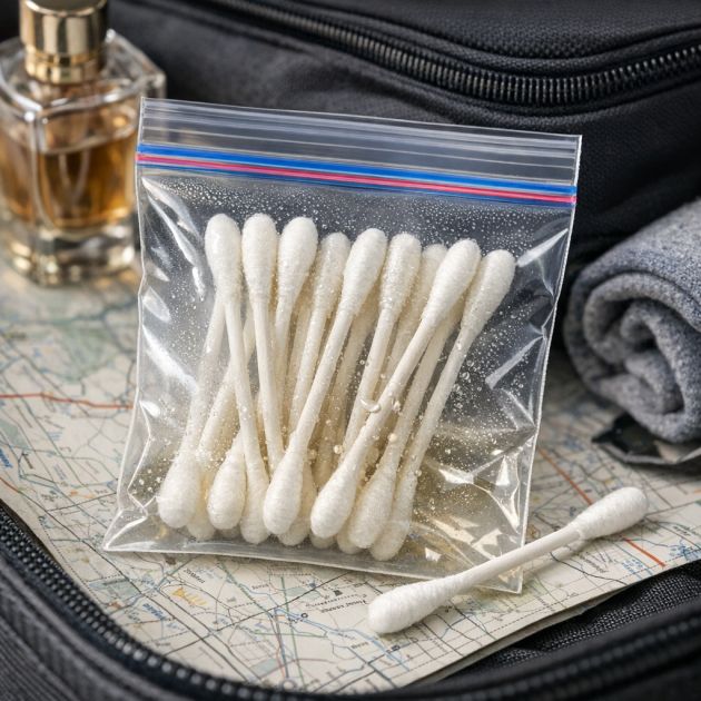 Matkustaessa täysikokoisen hajuvesipullon kantaminen voi olla hankalaa. Sen sijaan liota muutama vanupuikko lempihajuvedesi veteen ja säilytä niitä uudelleensuljettavassa muovipussissa. Aina kun tarvitset tuoksunraikastinta, ota vain vanupuikko esiin ja taputa sitä pulssipisteisiisi. Tämä menetelmä ei ole ainoastaan kätevä, vaan se myös varmistaa, että sinulla on raikas tuoksu liikkeellä ollessasi ilman suuren pullon kantamisen vaivaa.