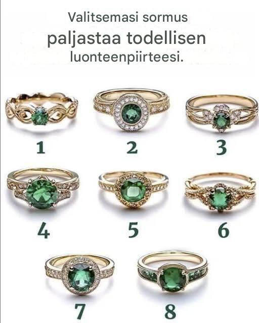 Silmät ovat sielun peili… mutta oletko huomannut, että oma lauseesi sanoo saman asian? Kymmenen pientä sormusta, lähes ajattelemattomasti valittuna, voi paljastaa paljon enemmän kuin vain tyylisi. Entäpä suosikkisormuksesi, joka erottuu joukosta ihmisen omaleimaisimman ominaisuuden vuoksi? Haluatko lisätietoja? Ole varovainen, jotkut paljastukset saattavat yllättää sinut…