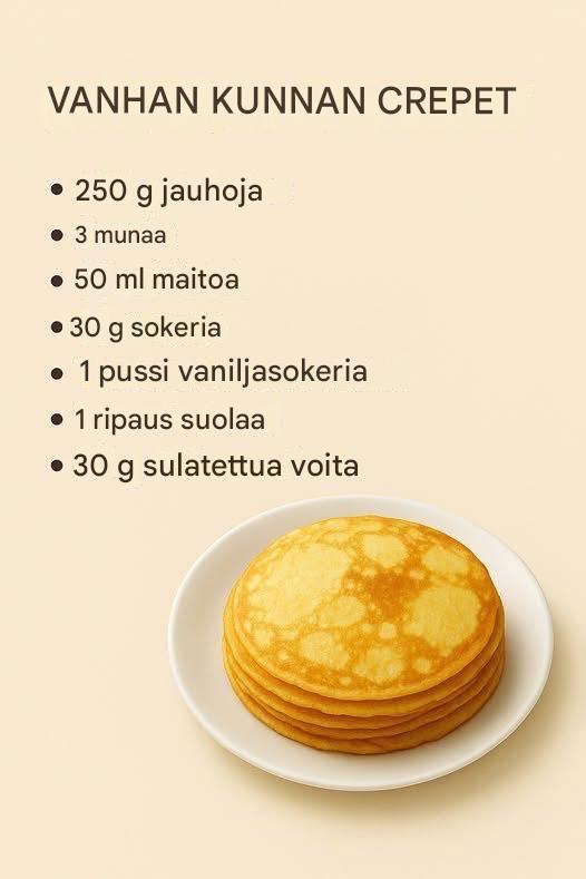 Herkullisia, ohuita ja kuohkeita kreppejä, yksinkertaisia ja perinteisiä, täydellisiä aamiaiseksi tai iltapäivän välipalaksi.