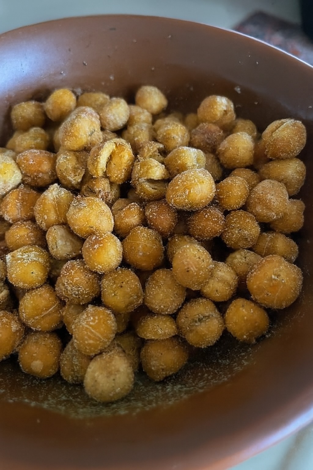 Yksi syy siihen, miksi otin paahdetun kikherneen, oli terveellisempien aterioiden ja välipalojen syöminen. Rakastan rapeita välipaloja, mutta vihaan kaikkia tyhjiä kaloreita ja rasvaa. Kokeilin paahdettuja kikherneitä ja olen todella tyytyväinen tuloksiin! – päivitetty: tässä on resepti, jota noudatin: Valuta yksi tölkki kikherneitä (ei tarvitse huuhdella) – laita korin pohjalle yhteen kerrokseen ja laita 190 asteeseen 17 minuutiksi. Kuumenna ilman lisättyjä aineksia 2 minuuttia, jotta ne kuivuvat. Suihkuta päälle öljyä (käytin oliiviöljysuihketta ja suihkutin sitä hyvin kevyesti) –